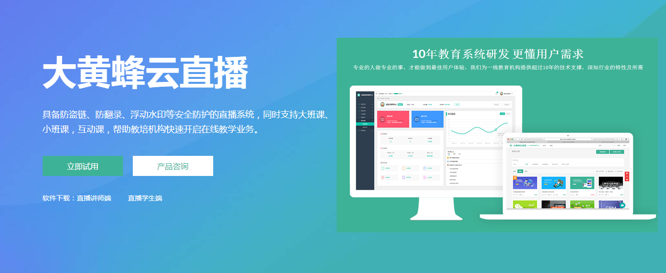 大黄蜂云课堂网校系统基于培训机构和教育行业而设计开发的一套在线教学系统。大黄蜂云课堂就是作为专业在线教育技术服务商,可以帮助想长期进行在线教育的企业或机构搭建属于自己的教学平台。